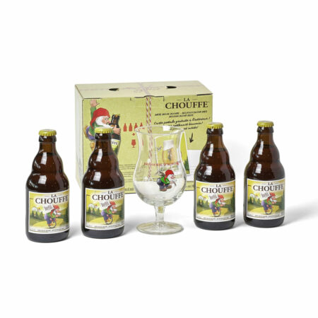 4 Bottiglie da 33cl di “La Chouffe” + 1 Bicchiere Serigrafato “Brasserie D’Achouffe”